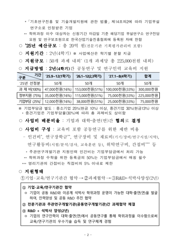 | 2025년 프로젝트 석박사 양성사업 재공고 | |||