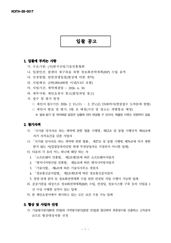 | [입찰공고] 콜센터 재구축을 위한 정보화전략계획(ISP) 수립 용역 | |||