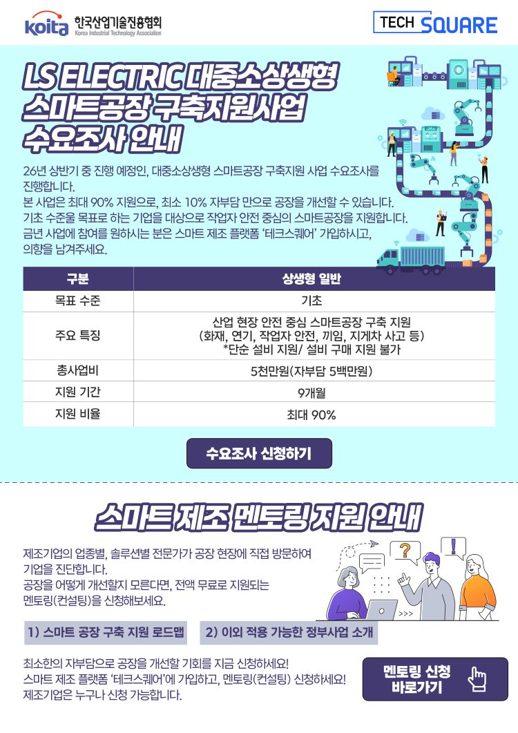 | [산기협-테크스퀘어] 대중소상생형 스마트공장 구축지원사업 수요조사 안내 | |||