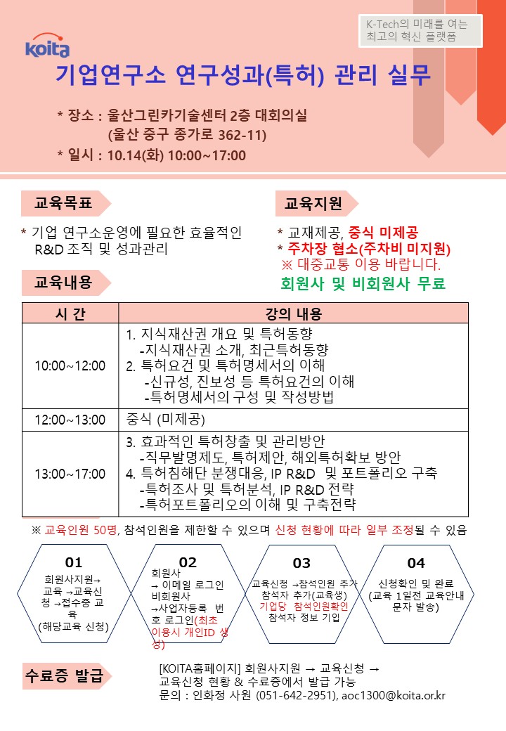 | [영남권] 기업연구소 연구성과(특허) 관리 실무 | |||