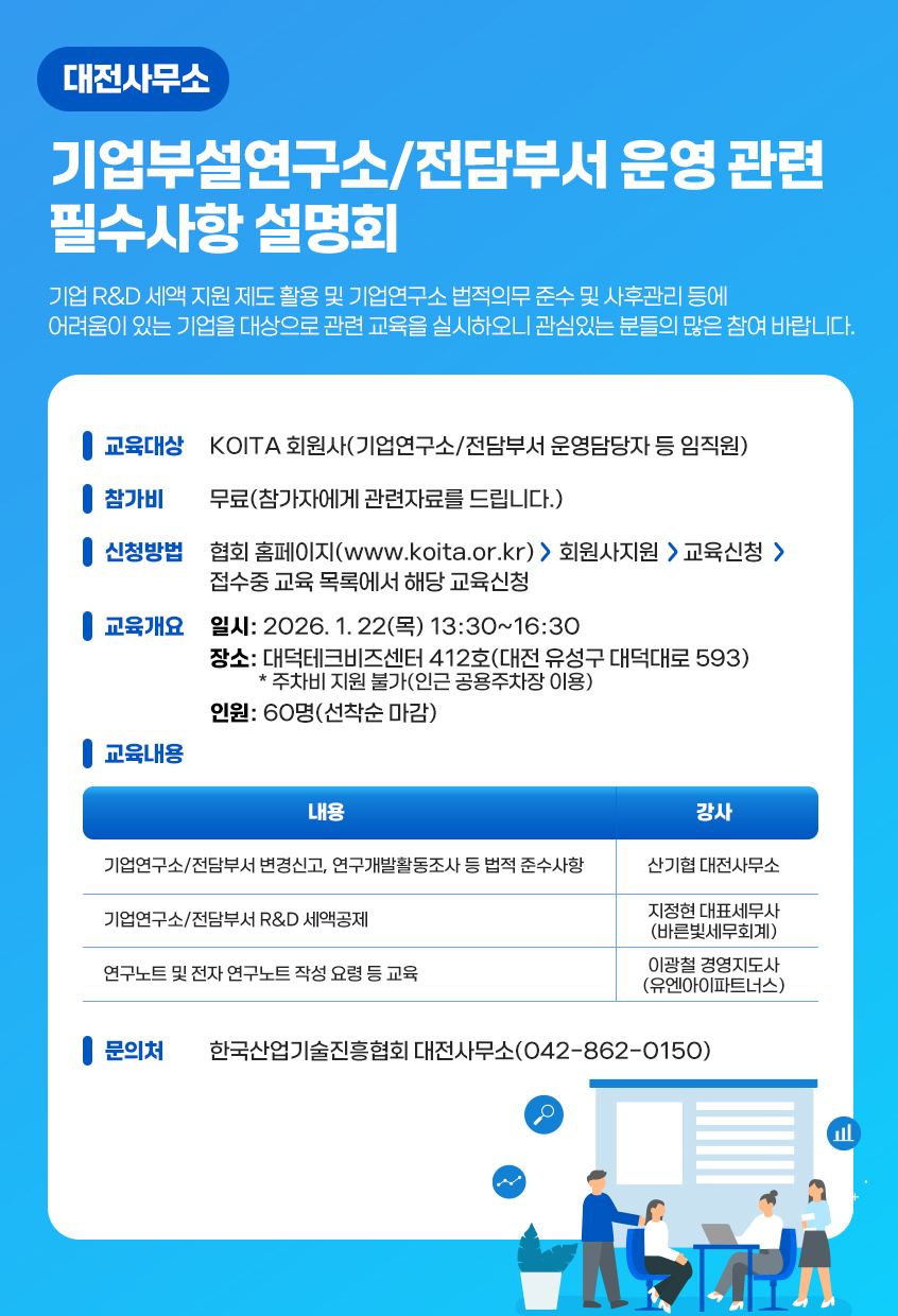 | [충청권] 2026년 1월 기업연구소/전담부서 운영관련 필수사항 설명회 | |||