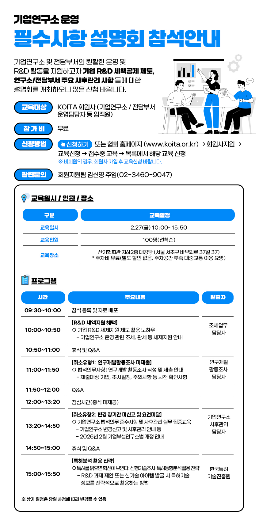 | [수도권] 2026년 2월 기업연구소 운영 필수사항 설명회 | |||