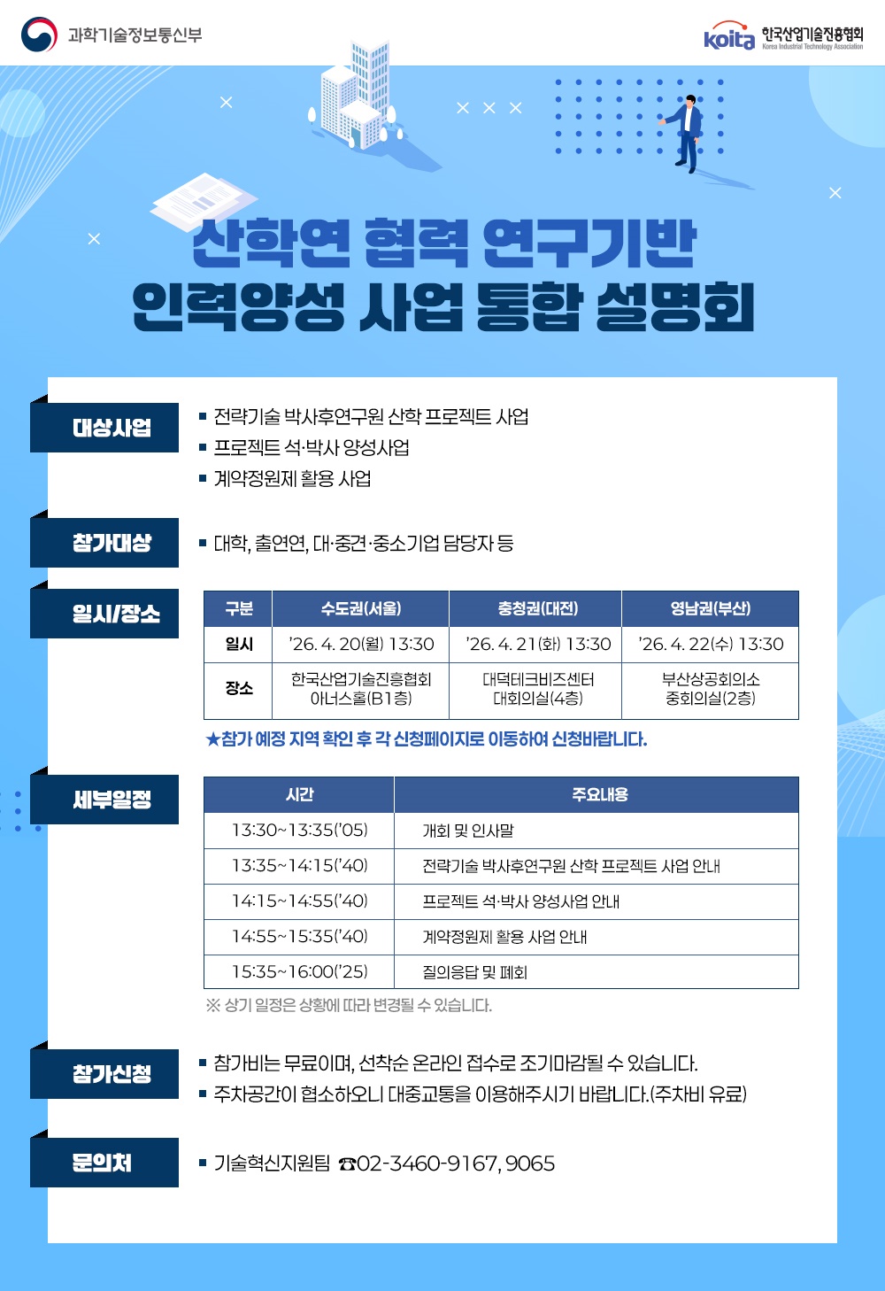 | [충청권] 산학연 협력 연구기반 인력양성 사업 통합 설명회(전략기술 박사후연구원 사업 등) | |||